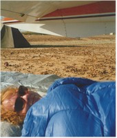 Well, the camel story is best left told another day - suffice to say we can confirm their love of the amber nectar. By now we were ready to hit the sack, and, given the town had swollen to 50 times its normal population, did as the others did and slept under the wings of Dave's plane in our swags.