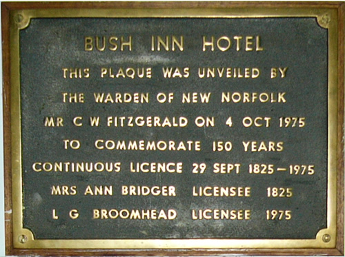 recognised the Bush Inn as the longest continuous hotel licence