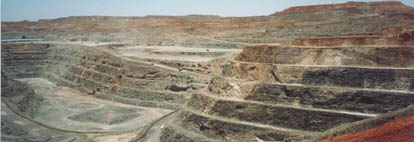 | Massive trucks look as ants in the Superpit (the photo only shows half of the pit) |
